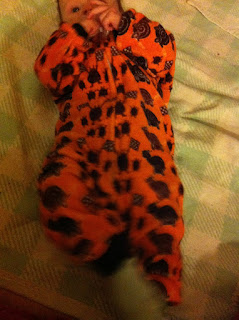 Olisi saanut olla reippahasti isompi kun nyt on aika justiinsa, vaikka kaavaan lisäsin pituutta haara-kaula välille ja lahkeisiin sekä hihoihin. Kasvaa liian nopiaan meidän vauva.
